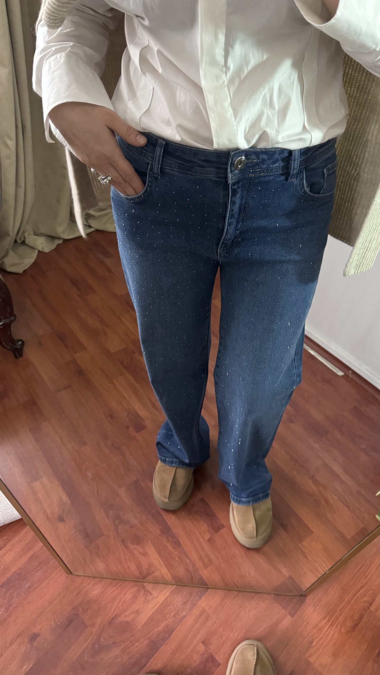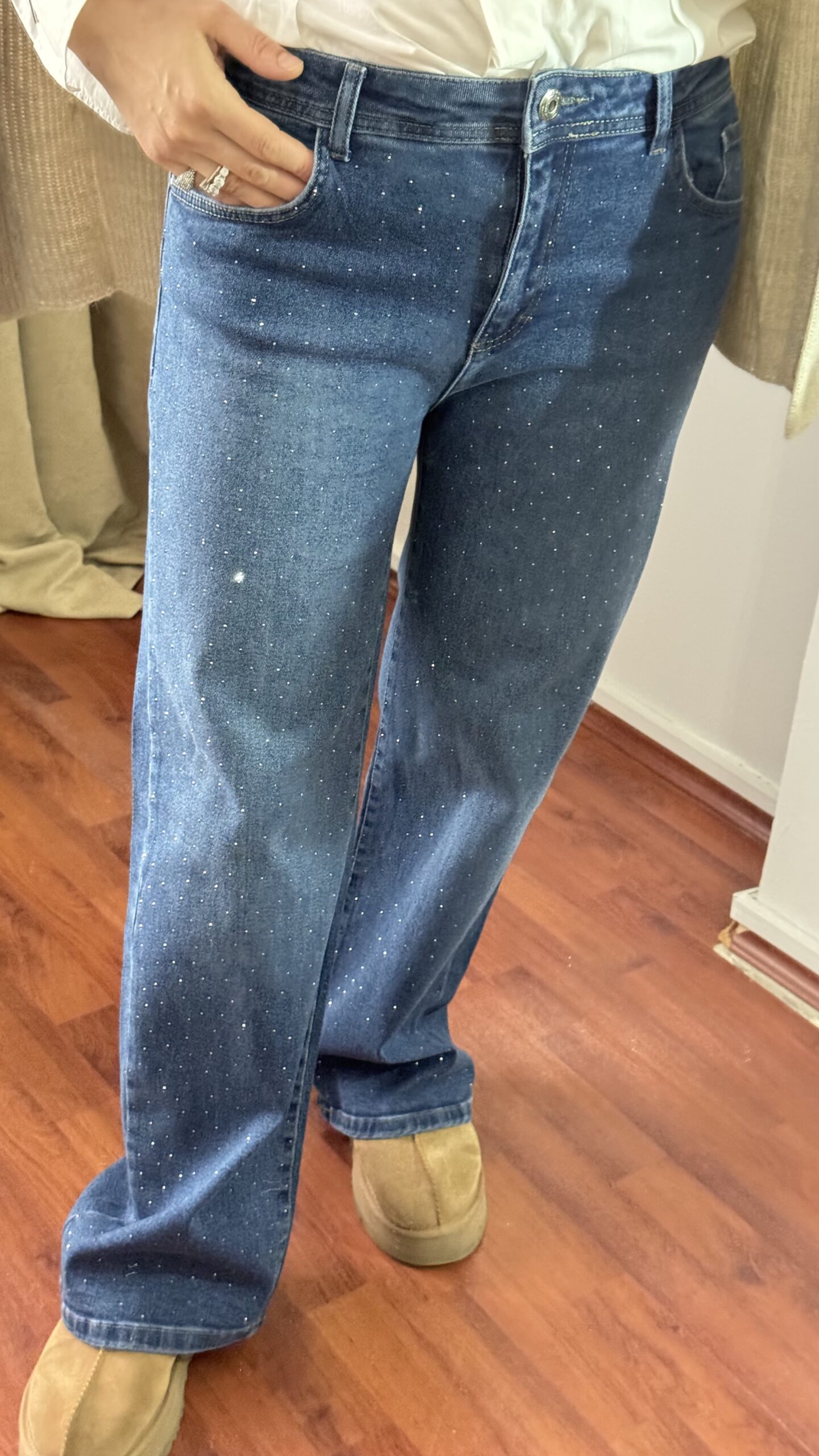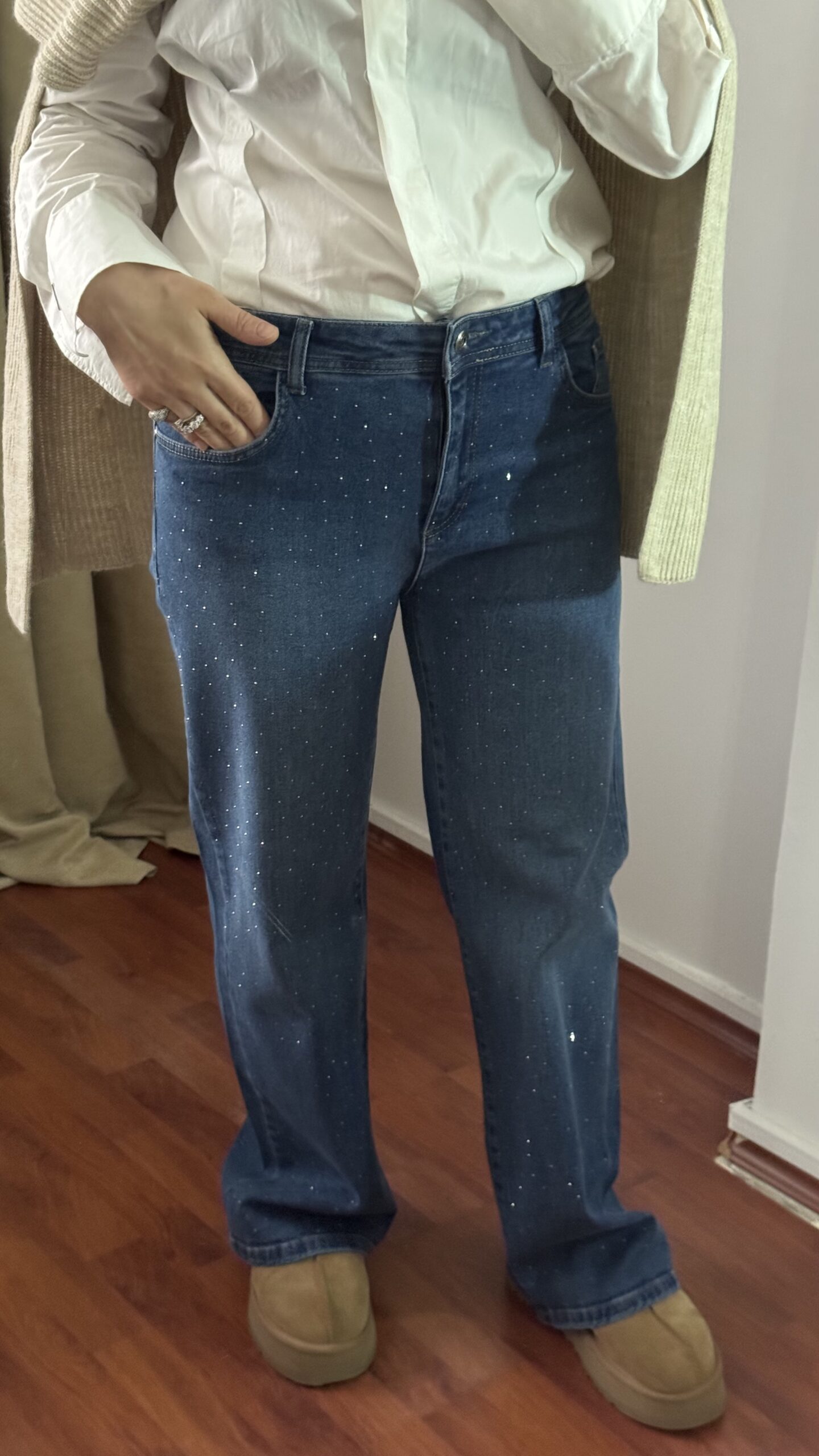 Yüksek Bel,Önü Taş Baskılı Jean,esnek ve yüksek beldir. Ön taraftaki taşlar yapıştırmadır hassas yıkama ile tersten yıkanmalıdır.Günlük kullanım ve özel günler için uygundur.